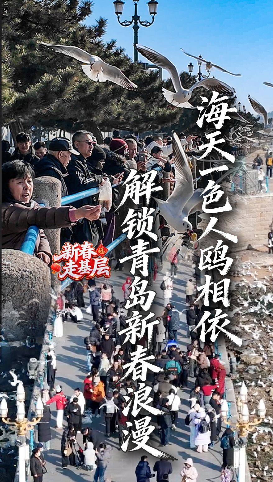 大年初一,栈桥喂海鸥,青岛特有的新春浪漫!
