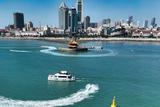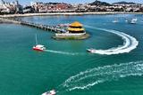 船行碧波绘春光:栈桥小青岛海面铺展流动画卷