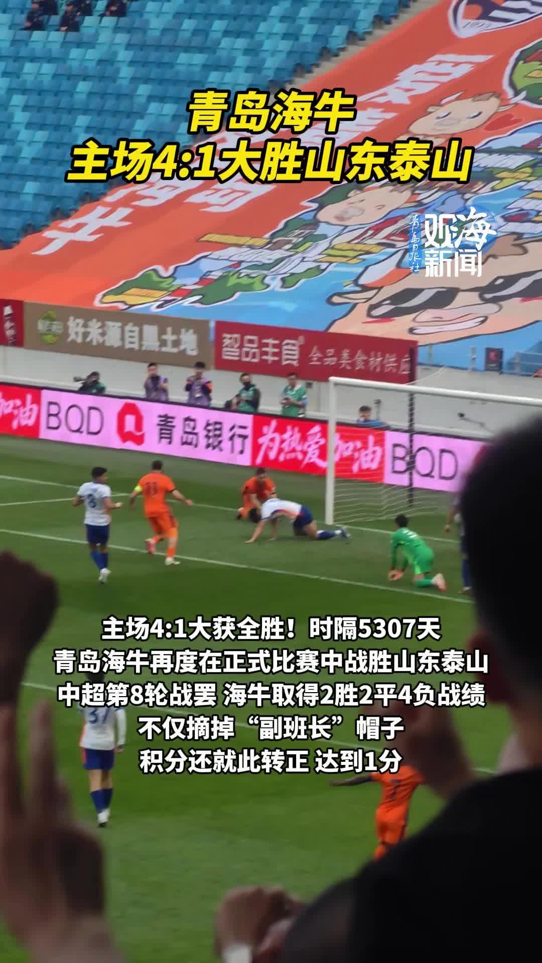 青岛海牛队主场4:1大胜山东泰山队,观海新闻邀您为球队和球员打分→