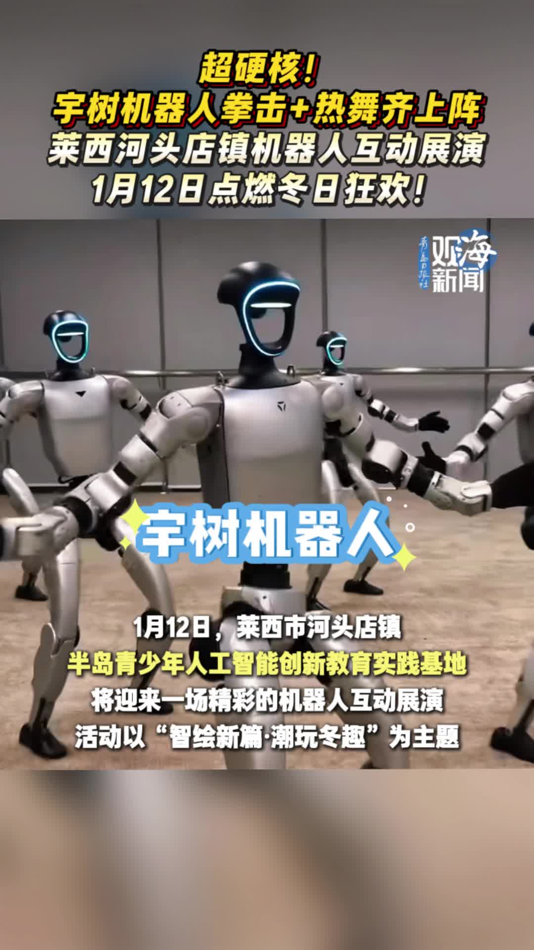 超硬核!宇树机器人拳击+热舞齐上阵,莱西河头店镇机器人互动展演点燃冬日狂欢