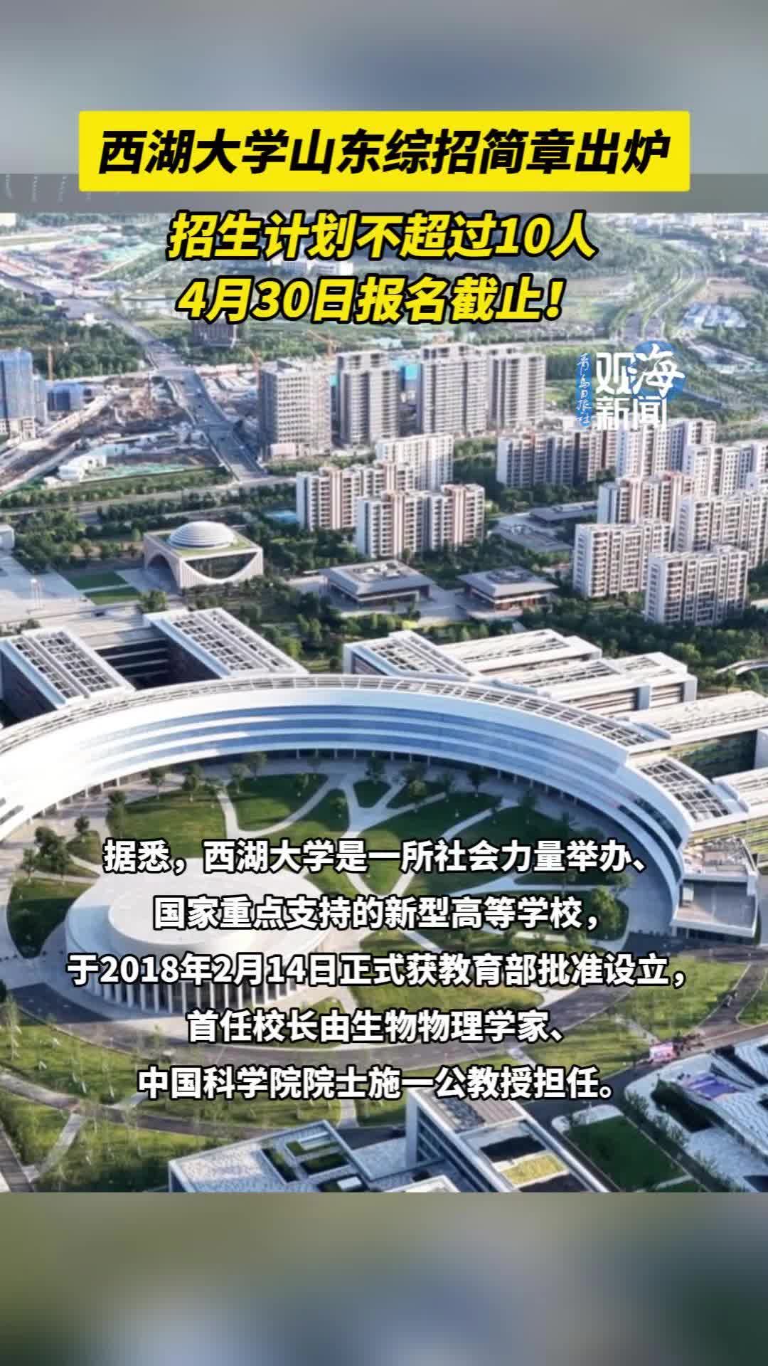 西湖大学山东综招简章出炉,招生计划不超过10人,4月30日报名截止!
