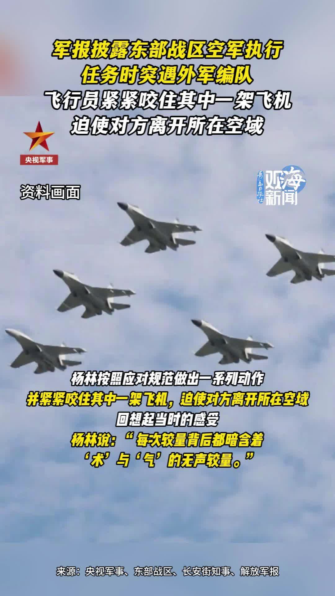军报披露东部战区空军执行任务时突遇外军编队,飞行员紧紧咬住其中一架飞机,迫使对方离开所在空域
