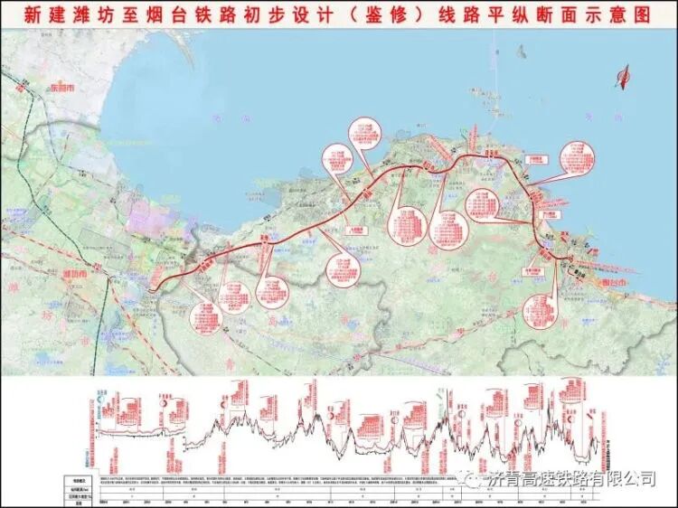 今年4月份,山东省工程咨询院发布《新建潍坊至烟台铁路社会稳定风险评估公众参与信息公示》。公示信息显示,潍坊至烟台段工程由济青高速铁路有限公司负责建设,项目连接青岛都市圈和烟威都市区,西起潍坊市管辖的昌邑市,东至烟台市管辖的莱山区,途经青岛平度市,烟台莱州市、招远市、龙口市、蓬莱市、烟台开发区、福山区和芝罘区,线路正线全长236公里,共设车站10座,其中新建车站4座,在建车站1座,与既有并站3座,改建车站2座。