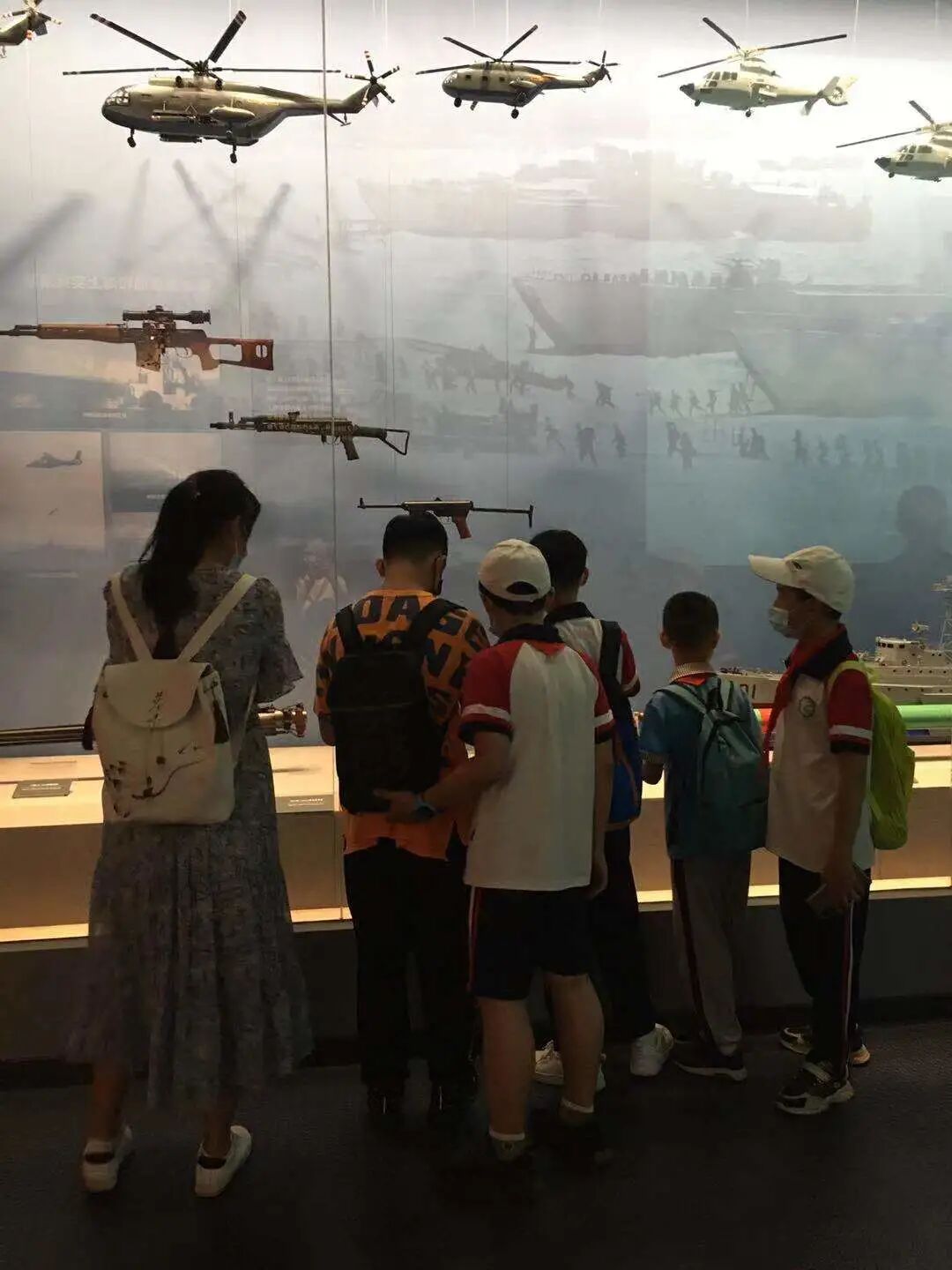 各种海军航空装备、海军陆战装备、海军安防装备,虽然历经时光的洗礼,却难掩当年的峥嵘岁月,让队员们热血沸腾、自豪感油然而生。少先队员们纷纷有感而发。
