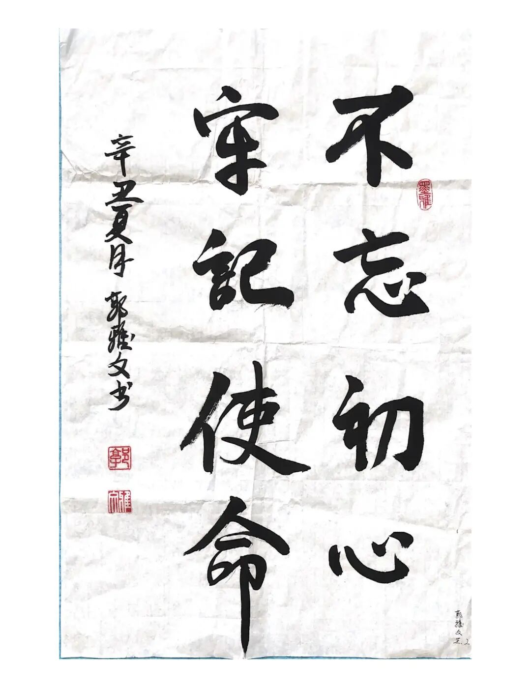 不忘初心,牢记使命。习近平总书记在党的十九大报告中指出:“中国共产党人的初心和使命,就是为中国人民谋幸福,为中华民族谋复兴。”枣园学子在习爷爷的教导下,挥毫泼墨,一幅幅遒劲有力的书法作品、形神兼具的中国画作品,皆蕴藏着队员们对美好生活的期望。