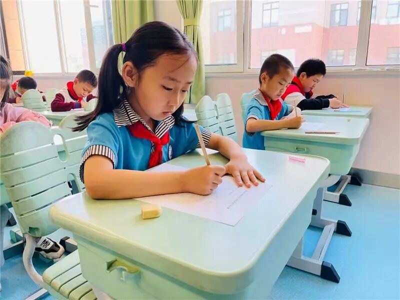 在书写比赛中,每一位学生都信心满满,他们握笔正确、坐姿端正、用心书写,表现出良好的书写习惯,所写作品漂亮美观、简洁大方,充分展现了枣园学子的良好风采。
