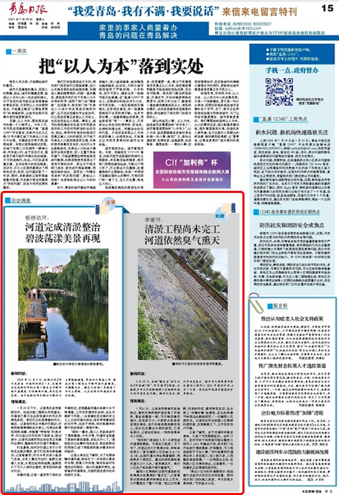 4月20日,本报“曝光台”栏目刊发《河道被“侵”,河长难寻》报道,反映胶州市兰州东路樾郡小区南侧河道水体污染发臭问题。稿件刊发后,胶州市回复表示,胶州市已将李家河综合整治工程列入2021年建设计划。6月1日前,将完成河道清淤疏浚和护岸整治。