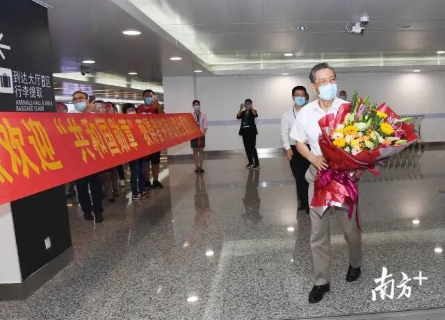 9月8日晚,荣获“共和国勋章”的钟南山院士从北京乘机返回广州