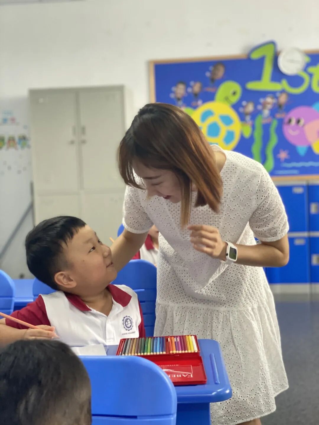 他们用稚嫩的手法,鲜艳的色彩,灵动的线条,勾勒出教师们美丽高大的形象,也勾画出银海国际教育优良的传统和尊师重教的美德。