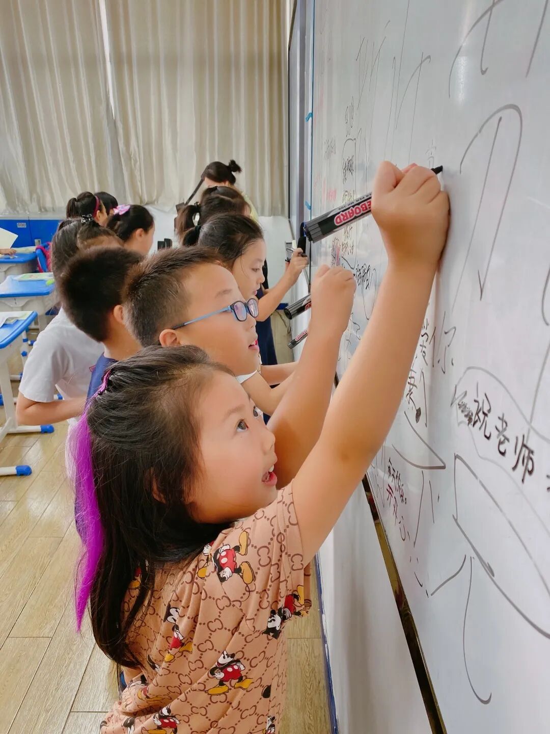 二至四年级的小朋友们用手中的画笔,展开思绪,在画布上挥洒出对老师的热爱和祝福。