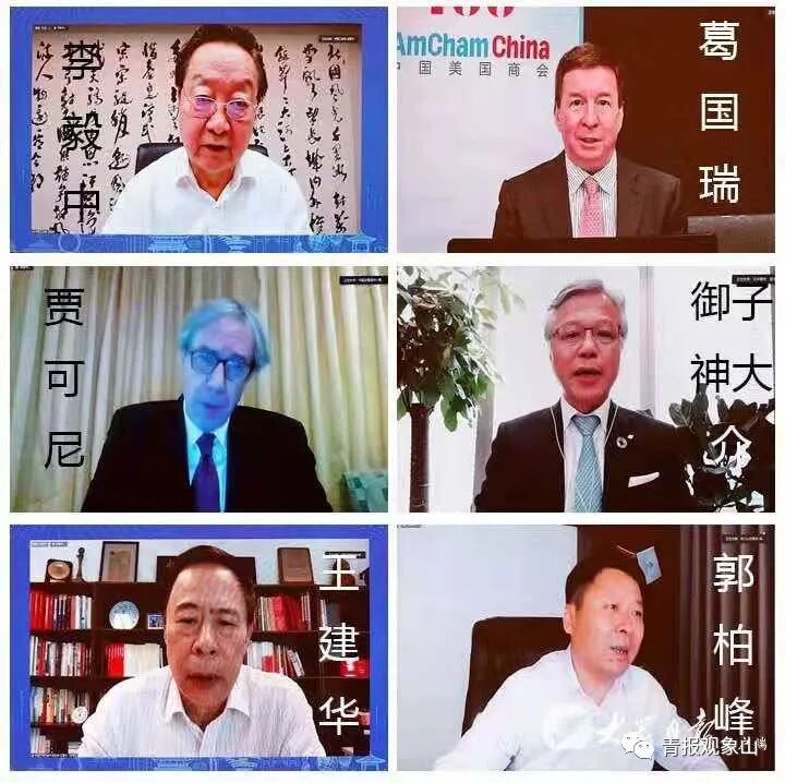 现场,中国工业经济联合会会长李毅中,中国美国商会主席葛国瑞,中国欧盟商会副主席贾可尼,中国日本商会会长御子神大介,中国产学研合作促进会执行副会长、秘书长王建华等一众商协会负责人在线发言,共议在山东、在青岛的合作机遇。