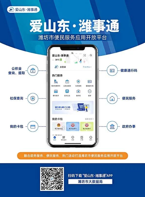 为了不断提高群众和企业办理便捷度,潍坊市大数据局结合“流程再造”“一网通办”等工作要求,大力整合全市政务服务、公共服务、便民服务等服务资源,开发建设本地化掌上政务便民服务APP“爱山东·潍事通”。深入推进政务便民服务“掌上办”,多措并举为群众和企业提供高效、便捷、贴心的“掌上服务”。