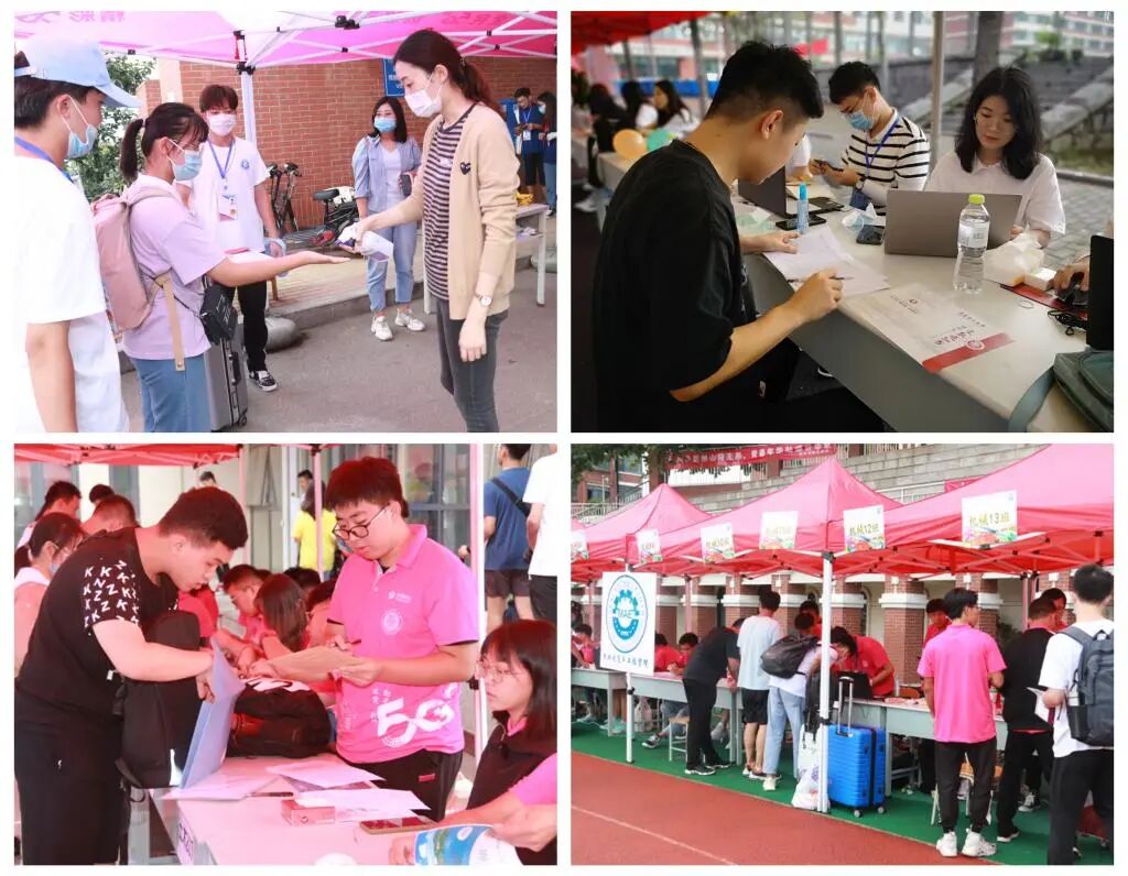 校园里,随处可以看到忙碌的迎新工作人员、大学生志愿者和互帮互助的场面。各部门、学院协调配合、通力合作,为新生报到提供暖心服务和创意举措,建筑与城乡规划学院制作展出了考研光荣榜,不仅给新同学树立了榜样,也给新生家长们建立起对孩子的无限期望。艺术与设计学院拍摄制作了小视频并在抖音平台发布,用新生喜欢的方式示范讲解“报到全流程”,深受新生欢迎。