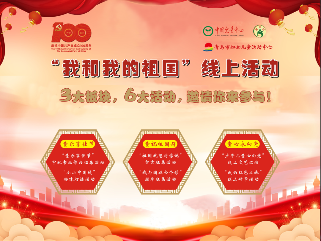 家是最小国。国是千万家。为庆祝中国共产党成立100周年,厚植爱家爱国爱党情怀,培育和践行社会主义核心价值观,青岛市妇女儿童活动中心积极响应全国“双有”组委会号召,面向青岛市少年儿童,于10月份开启“我和我的祖国”主题教育月活动。运用新媒体手段,通过线上线下相结合的方式,组织开展丰富多彩的主题教育活动,丰富儿童和家庭的校外闲暇生活,把爱家和爱国统一起来,把实现个人梦、家庭梦融入国家梦、民族梦之中。弘扬爱国主义、集体主义精神,培养儿童的家国情怀,引导儿童听党话、感党恩、跟党走。