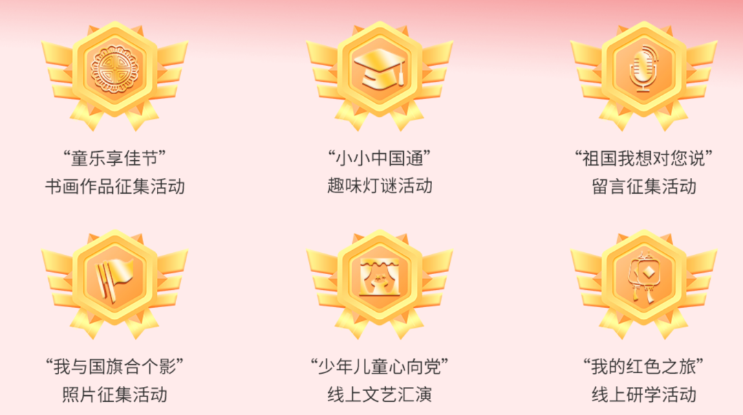 活动收获:完整观看一个视频可获得“少年儿童心向党”电子徽章一个。