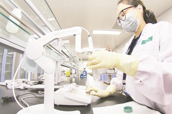 烟台迈百瑞国际生物医药有限公司科研人员正在研发新药。(资料片)