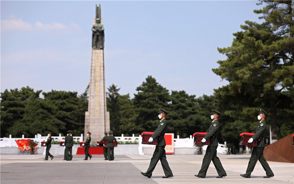 9月2日,志愿军烈士的遗骸抵达沈阳抗美援朝烈士陵园。新华社记者 姚剑锋 摄