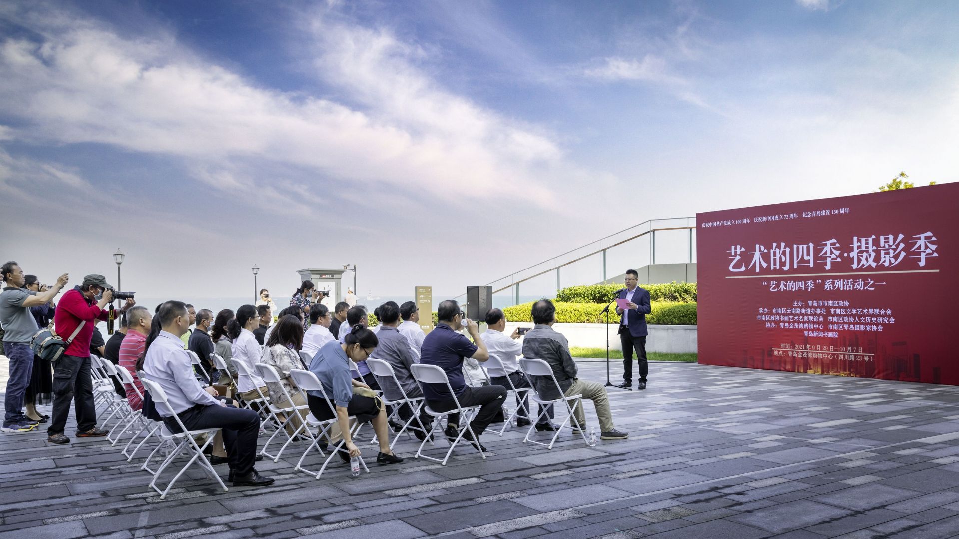 9月29日,由市南区政协主办,市南区云南路街道办事处、市南区文学艺术界联合会、市南区政协书画艺术名家联谊会承办,市南区琴岛摄影家协会、青岛新闻书画院、金茂湾购物中心协办的“艺术的四季·摄影季”主题展览开幕式在金茂湾后海广场举行。