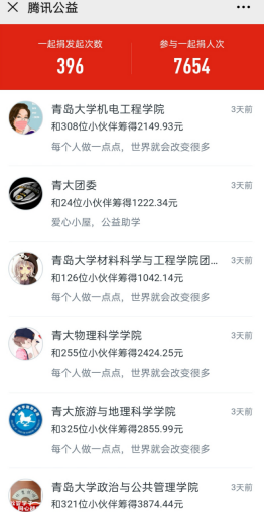 学校35个学院团委(支部)和医学部团工委积极行动,789个团支部、20479名青大青年投身其中,他们或者组队募捐,或者个人转发宣传,充分体现了学校共青团系统强大的动员力和号召力,也再次证明了青大人一心向善的责任与担当。