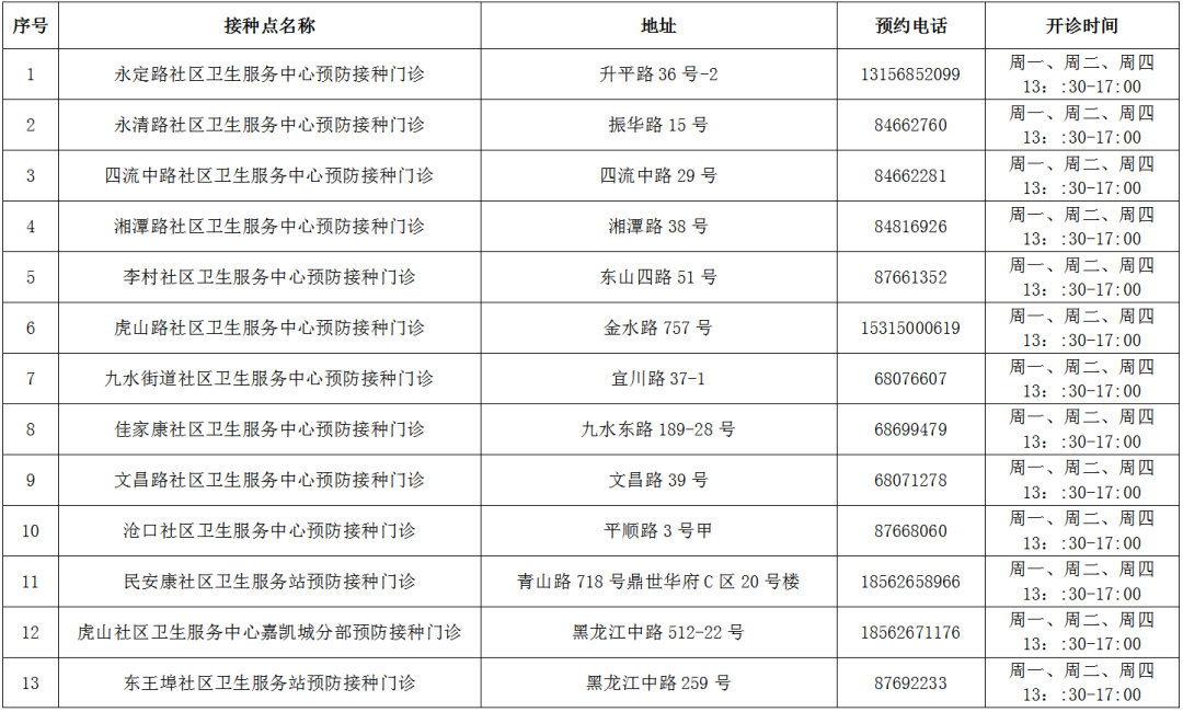 部分区市接种点及咨询电话来了!