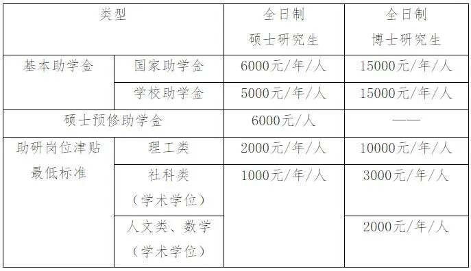 注:全日制学术学位博士研究生助研岗位津贴,导师出资每生每年大于等于10000元时,学校再出资5000元匹配。