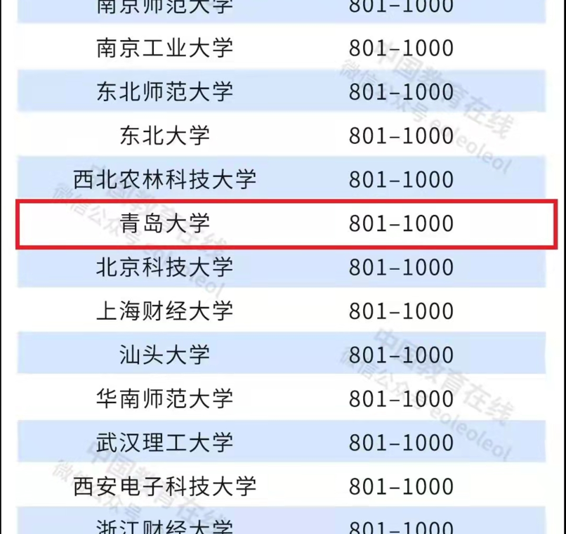 青岛大学首次入围泰晤士高等教育世界大学排行榜,列全球高校第801—1000位、国内高校65位。
