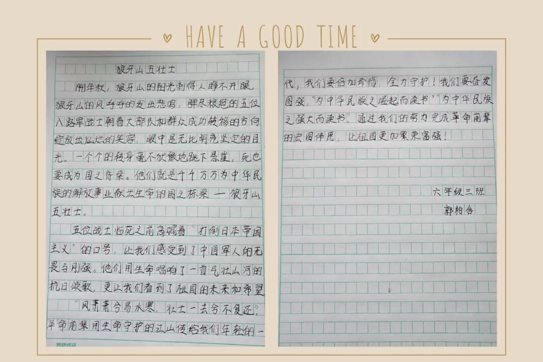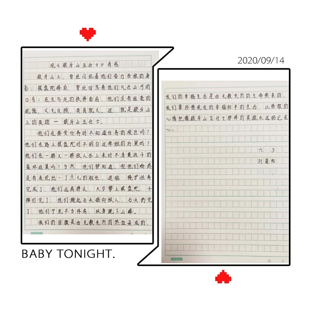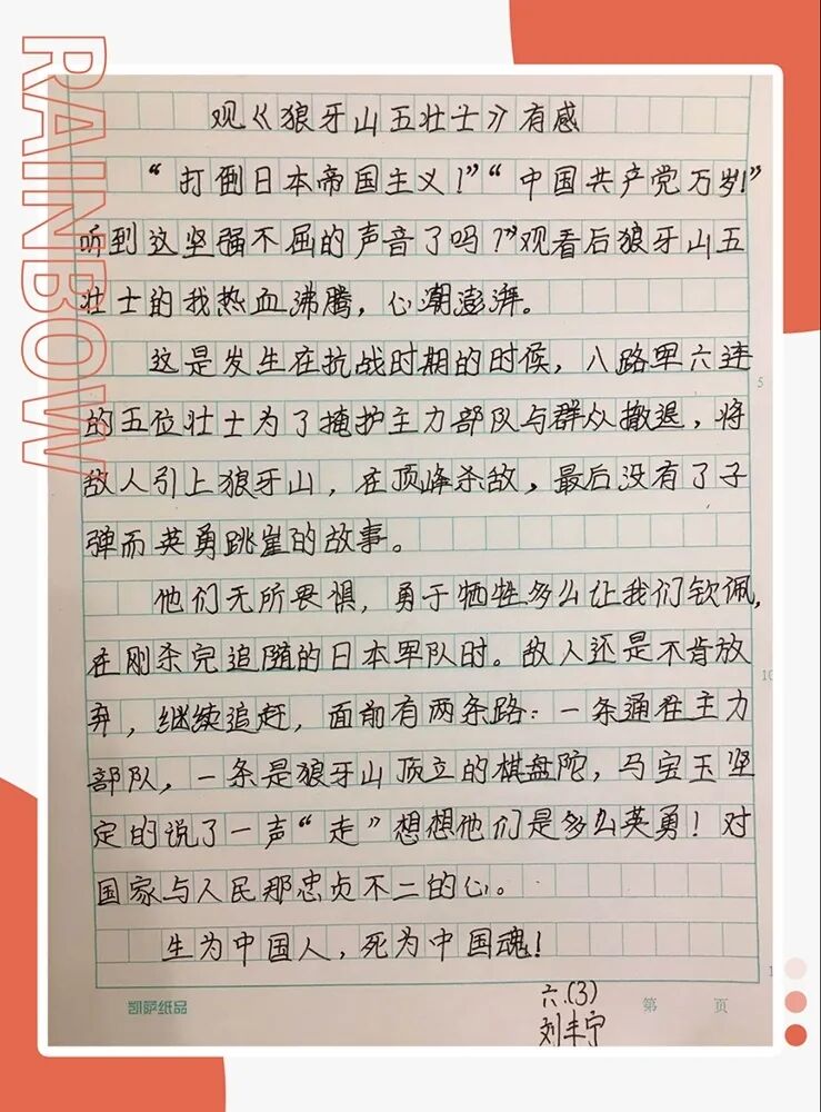 周末,6(3)中队的队员们自发组织观看爱国电影,并撰写了自己的感受