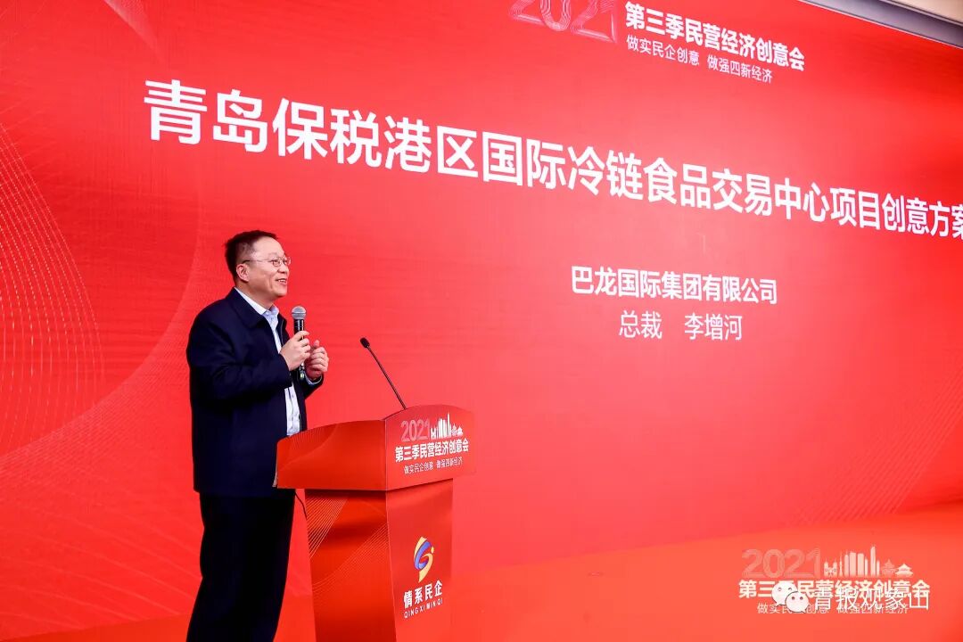 巴龙集团发布的创意项目是打造冷链双循环的典型示范性平台,投资过百亿元,将建设青岛港多级冷链食品“三大中心”,实现通关最快、服务最好、价格最优,助力青岛自由贸易港建设。