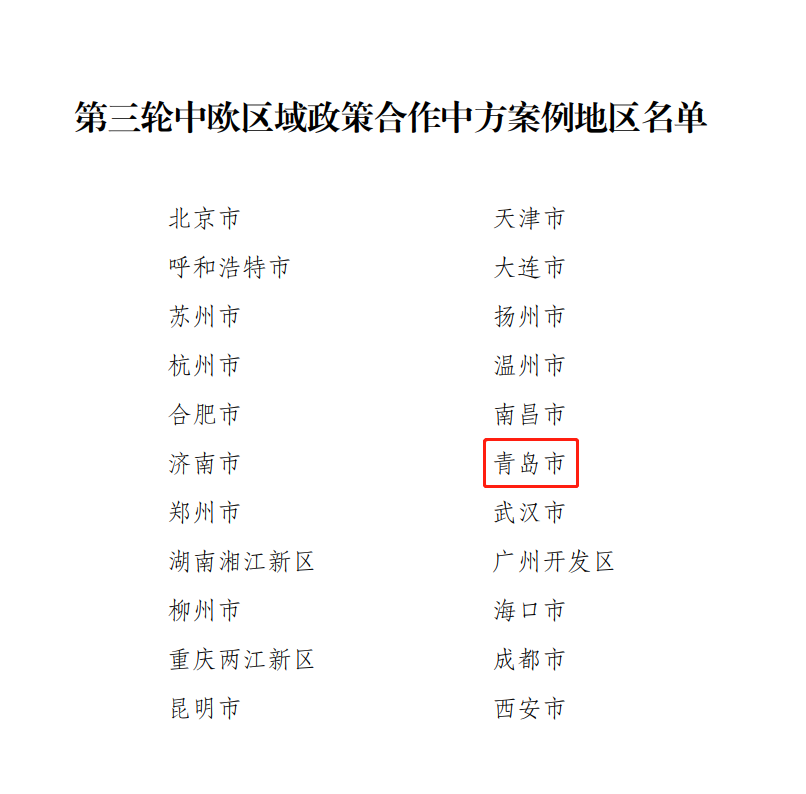 此番入选《第三轮中欧区域政策合作中方案例地区名单》,为青岛扩大与欧洲合作提供了新的平台和契机。