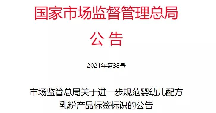 11月12日,市场监管总局发布《关于进一步规范婴幼儿配方乳粉产品标签标识的公告》,第四条规定:
