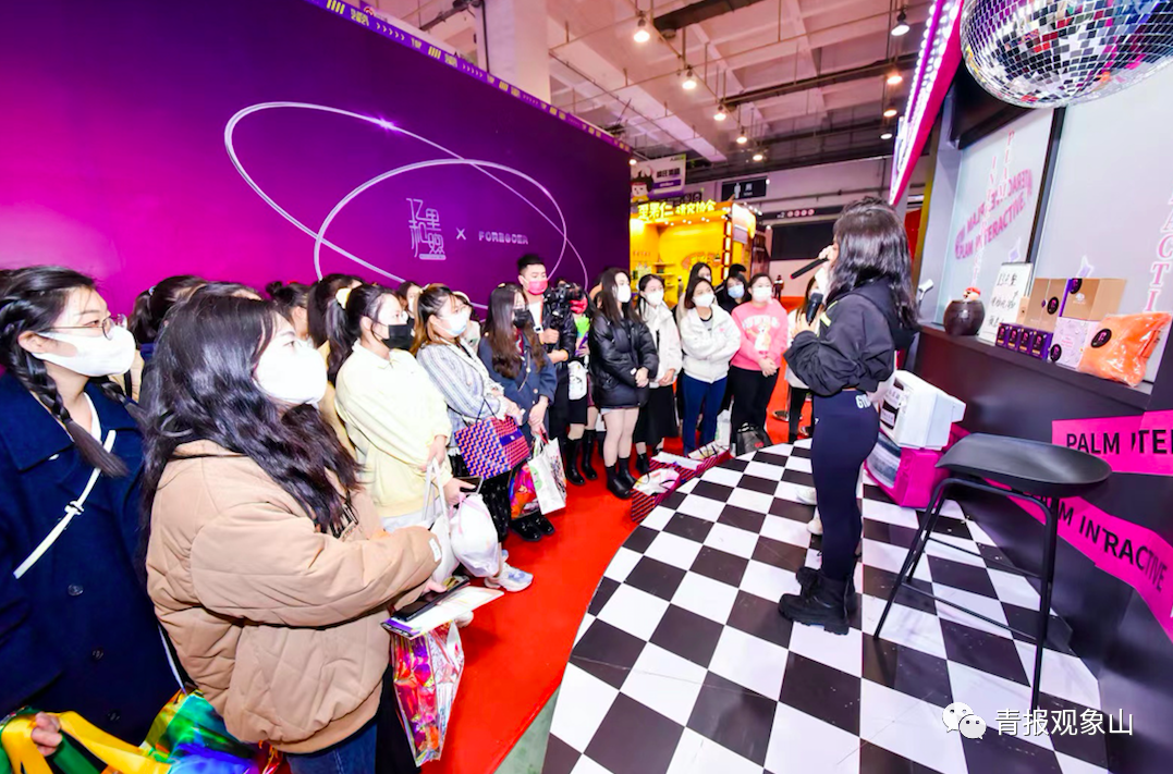 这是一场沉浸式粉丝狂欢。不同于普通展会,本次超级红人节“吃、喝、玩、乐”要素齐备,会场布置充满时尚气息,每一个展位都是一个景点,每一个场景都可以“发一条微博”。观众们“互助拍照”现象随处可见,坐在休息区沙发上的观众不少在“修图、发朋友圈”……
