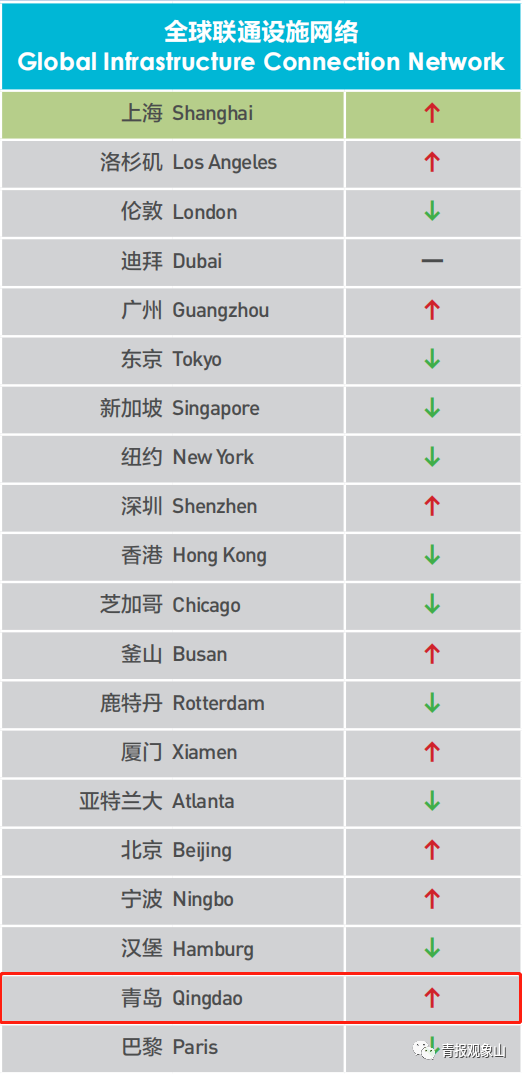 此番跻身“全球联通设施网络”先进城市,意味着青岛的交通国际枢纽地位再次被认可。依托“十字型”地理区位资源禀赋,叠加上合示范区、自贸试验区青岛片区等多个开放平台优势,青岛与全球的互联互通更为深度更为频密,为青岛面向世界开放发展打开了更大想象空间。