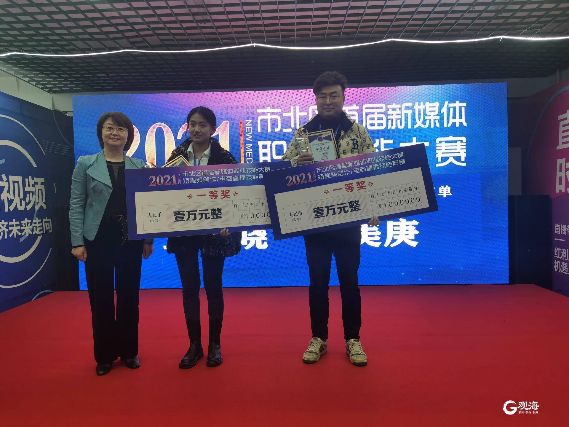 青岛日报社/观海新闻12月10日讯 今天下午,市北区首届新媒体职业技能大赛决赛在青岛德利丰职业培训学校举办,通过现场剪辑、直播带货等竞赛环节,短视频制作和电商直播两个项目分别决出一等奖1人、二等奖2人、三等奖3人,获奖选手获得了最高1万元的奖金。