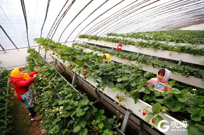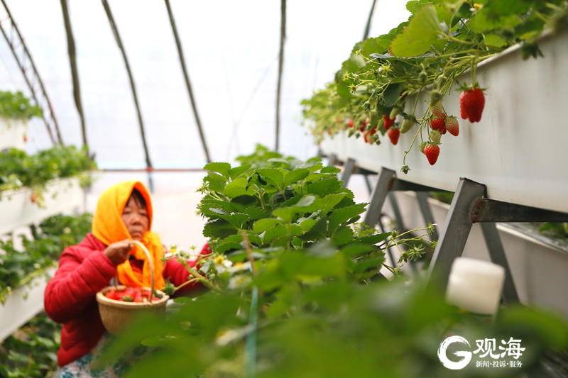 近年来,当地农业部门向农民推广了“立体栽培”技术,采用“草莓新品种+滴灌节水设施+温室立体基质栽培”模式,形成了集草莓育苗种植、管理销售、观光采摘于一体的综合性高效农业示范园,带动当地农民增收致富,助力乡村振兴。(青岛日报/观海新闻记者 王涛 通讯员 梁孝鹏 文/图)
