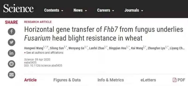 4月10日,山东农大作为唯一通讯单位的成果登上《科学》主刊,孔令让团队在全球首次找到并克隆抗赤霉病关键基因Fhb7,为解决小麦赤霉病世界性难题找到了“金钥匙”。这是我国小麦研究领域首篇Science文章,也是我国小麦重要功能基因研究领域首篇CNS三大主刊文章。