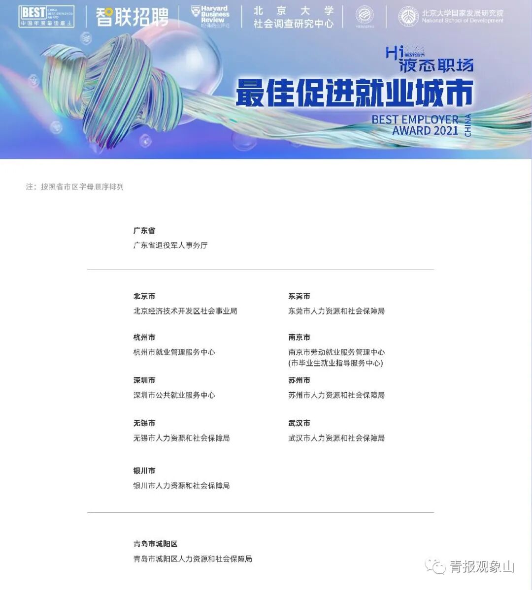 这是青岛连续第3年获评中国最佳引才城市,连续第2年获评中国最佳促进就业城市,这也是青岛入选的众多榜单中十分亮眼的一个。