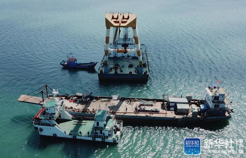 北洋海军旗舰定远舰铁甲出水作业图(9月18日摄)。新华社发 (国家文物局水下文化遗产保护中心供图)