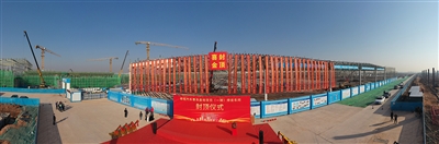 ■奇瑞汽车青岛基地乘用车项目焊装车间主体结构封顶仪式现场。