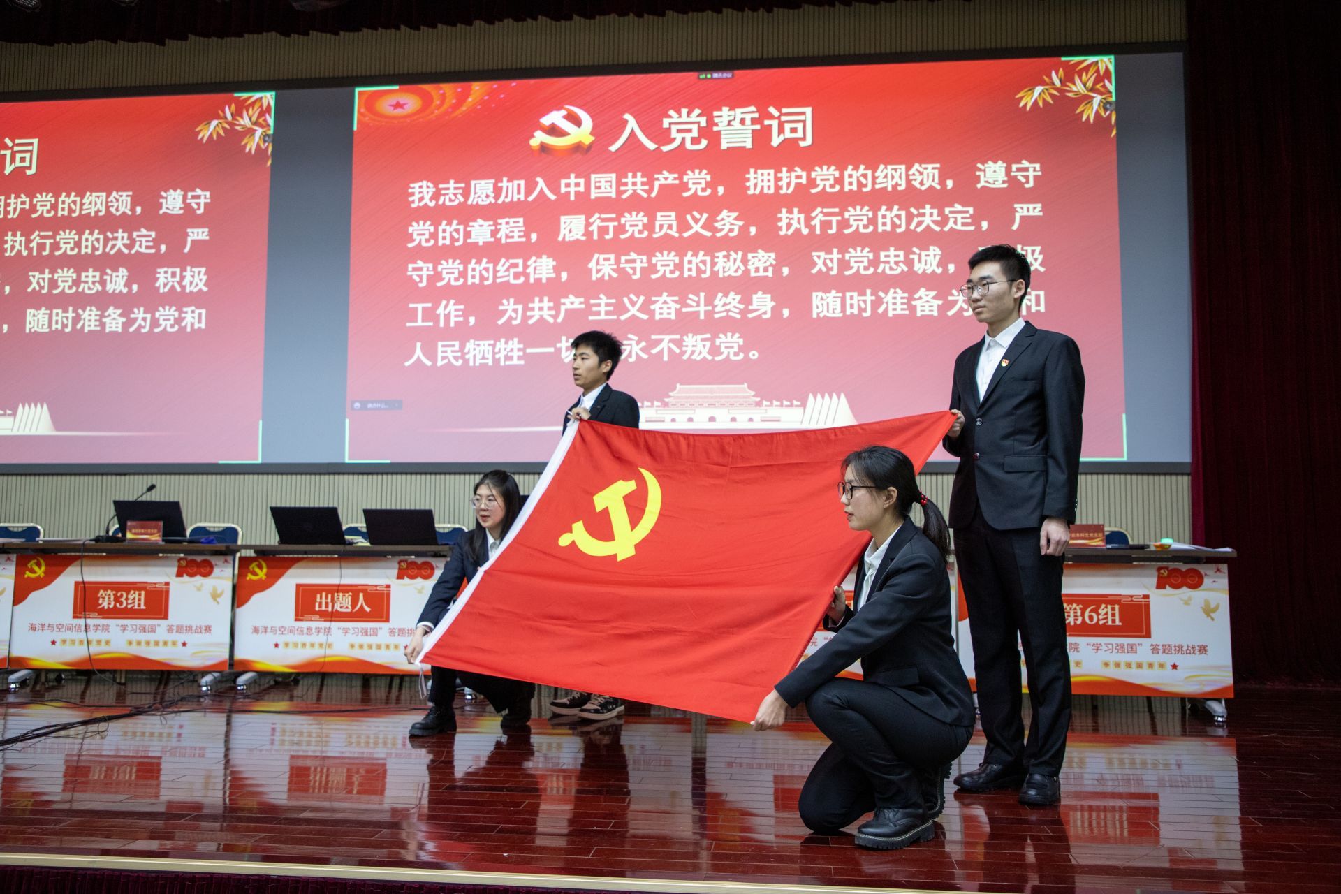 为深入推进党史学习教育,进一步激发广大学生党员的爱党之情、强国之志,持续掀起“学习强国”平台学习热潮,12月19日下午,中国石油大学(华东)海洋与空间信息学院“学习百年党史 争做强国青年”学习强国答题挑战赛决赛在留培楼多功能厅举行。