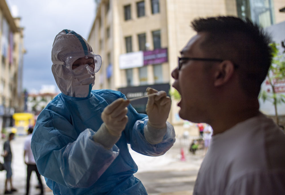 9月15日,医护人员为一名瑞丽市民进行核酸取样。新华社记者 江文耀 摄