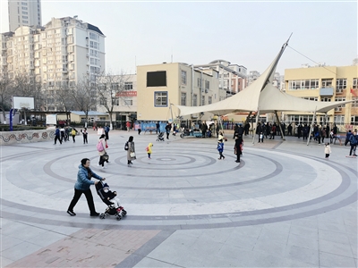 ▲整改后,福岭嘉苑广场地面已修复平整,许多市民在此休闲健身。