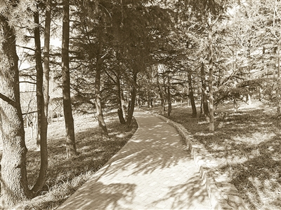 记者看到,健身步道位于深圳路东侧绿化带中,宽3米,长1500米左右。在健身步道南侧,每隔50米至100米就设置一处长凳椅。长凳长约2米,宽约半米,由石头和木头两种材料制成,椅面粉刷了枣红色油漆,整体色调与健身步道相协调。
