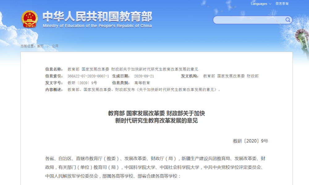 各省、自治区、直辖市教育厅(教委)、发展改革委、财政厅(局),新疆生产建设兵团教育局、发展改革委、财政局,有关部门(单位)教育司(局),中国科学院大学、中国社会科学院大学,中共中央党校学位评定委员会、中国人民解放军学位委员会,部属各高等学校、部省合建各高等学校: