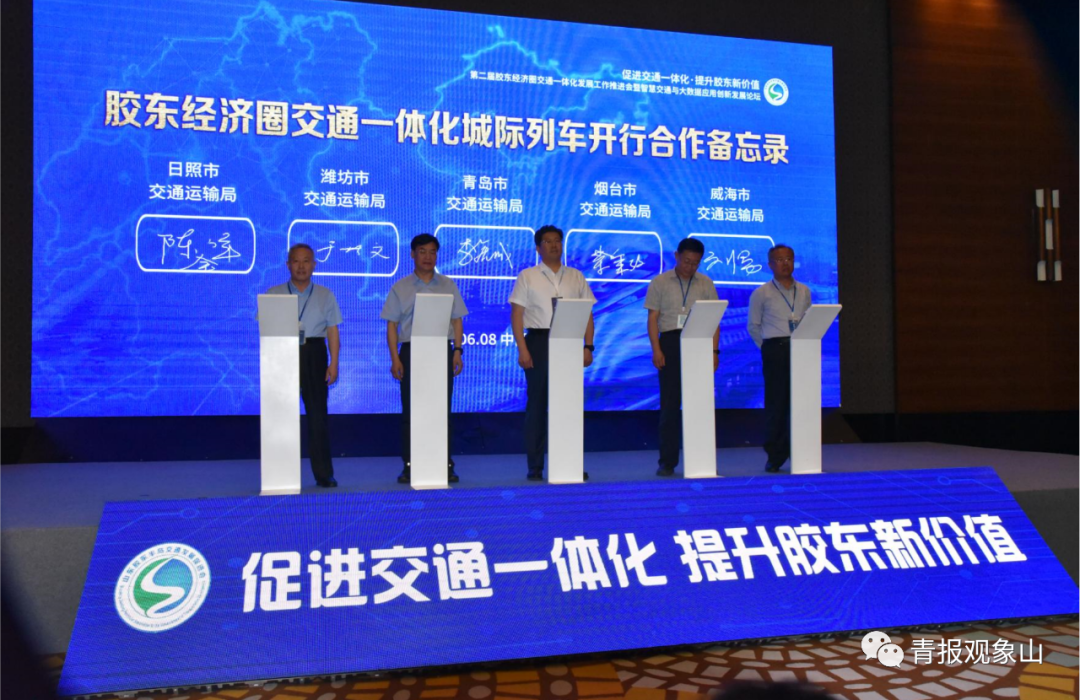 2021年6月在青岛举行的第二届胶东经济圈交通一体化发展工作推进会上,《胶东经济圈交通一体化城际列车开行合作备忘录》正式签署。备忘录签署以来,青岛市交通运输局正在积极协同兄弟城市,启动胶东经济圈城际铁路公交化开行方案研究。总的思路是借鉴成都市域铁路公交化运营经验,充分利用既有铁路资源,从先行增开市域列车、城际列车开始,逐步实现胶东五市城际铁路公交化运营,打造铁路网络“半岛环”,切实提升区域交通运输服务便利化水平。