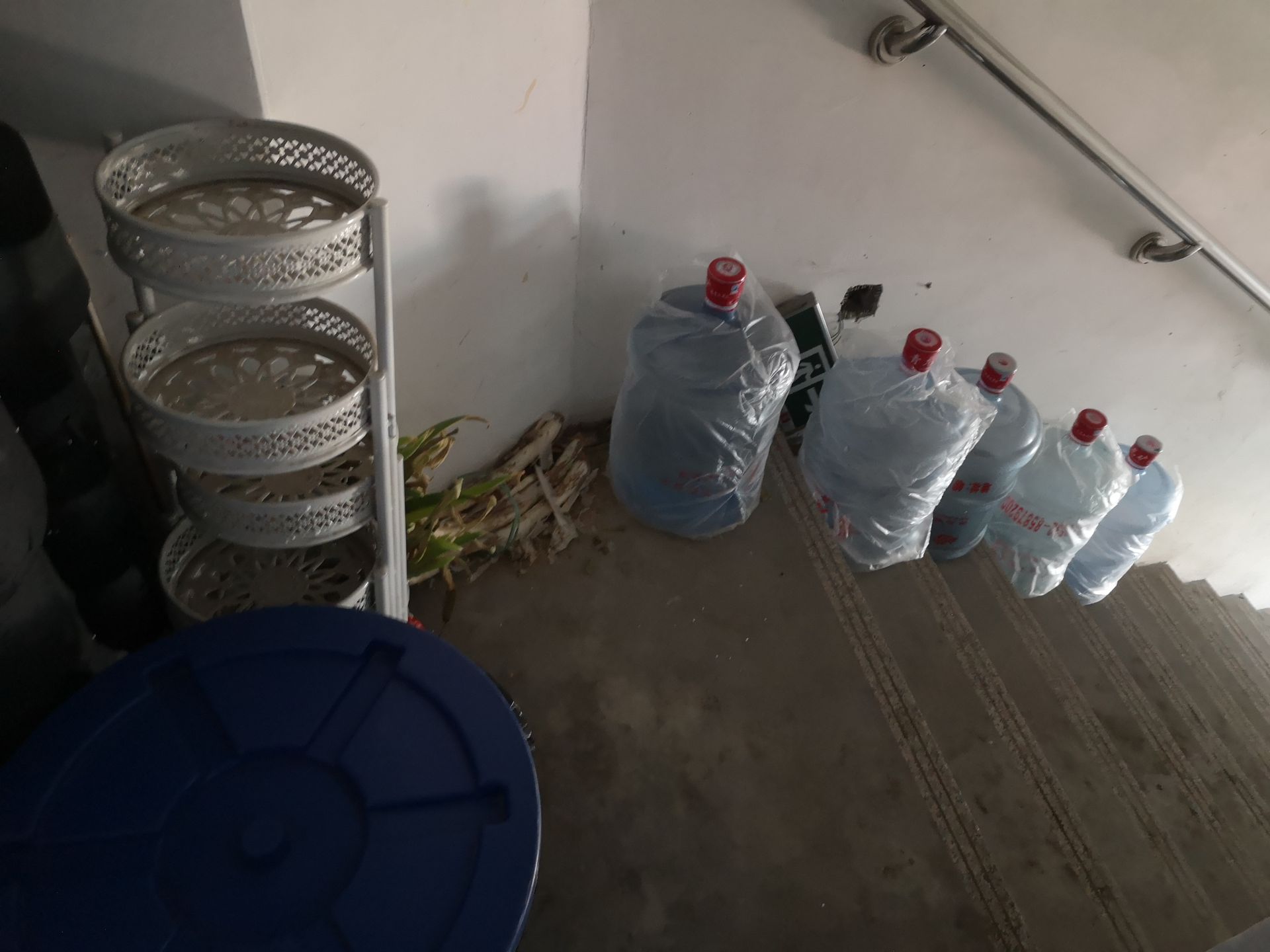 记者在走访6号楼2单元的楼梯通道时,发现多处楼梯及拐角处堆放着大桶水、置物架、泡沫箱、自行车等各类生活杂物。“这种情况存在很长时间了,物业公司只在公告栏贴过清理杂物通知,此后就没有下文了。”一位业主坦言。