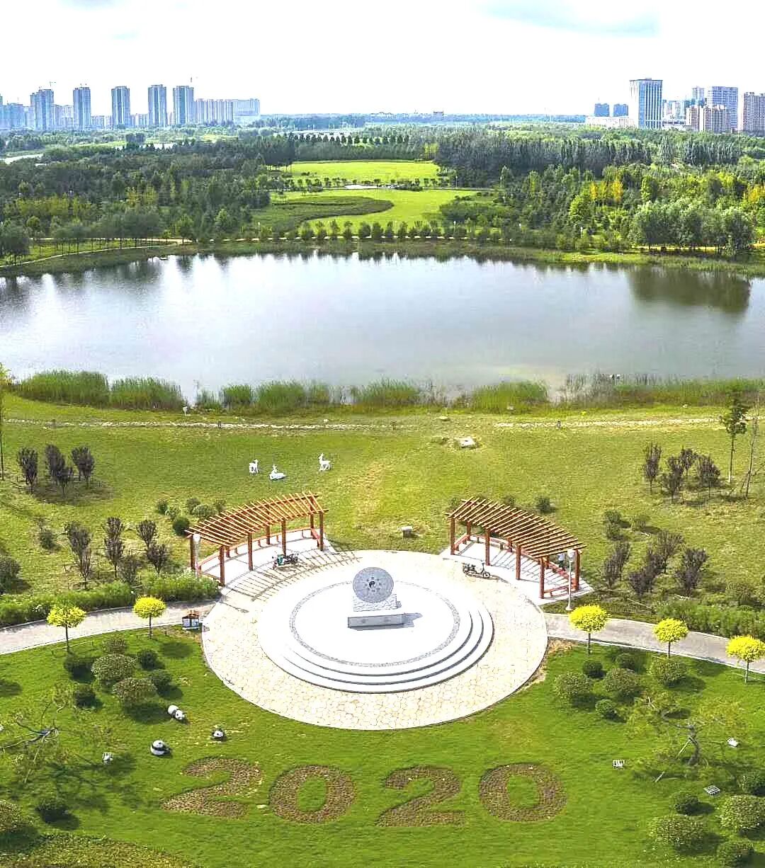 2020公园秉承“生态、自然、时尚、和谐”的设计理念,在保留原有地形地貌的基础上,回应群众健身休闲需求,聚焦城市品质提升,布局赏心悦目的绿植红花、彩色双拼的观光大道、别具匠心的景观小品、童趣十足的动物雕塑、七湖连心的水文奇观,与斜穿而过的“玉带”——平度的母亲河现河有机融合、相映成趣,整个公园的自然气息、生态底色和人文韵味尽显其中,独具平度本土特色,成为新的城市地标,也是广大市民休闲娱乐的好去处。