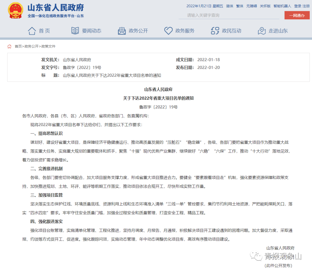在2021年度经济数据公布后的第二天,山东下达2022年600个省重大项目,用实打实的项目建设开局起步,提振信心,宣示决心,培植未来。