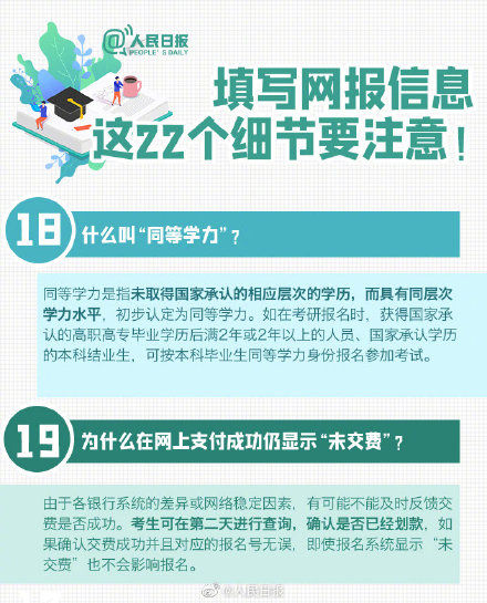 【2021考研开始预报名,注意这22个填报细节】①9月24日至27日每天9点至22点,考研预报名;②姓名生僻字要用拼音代替;③通讯地址是接收通知书的有效地址,需准确填写;④修改或重新填报报名信息要注意,一位考生只能保留一条有效报名信息…更多↓↓提醒备考的小伙伴!愿你成功上岸!