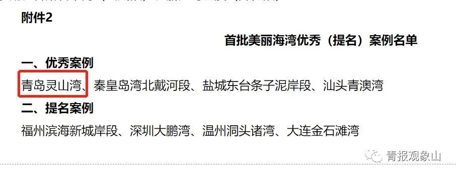 生态环境部给出的“理由”是,青岛灵山湾等案例,强化陆海统筹的生态环境综合治理、系统治理和源头治理,多措并举,提升海湾生态环境质量。