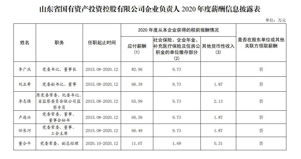 近日,山东省国资委管理的部分省属企业负责人2020年度薪酬信息对外披露。